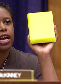 You are a hungry Afghan citizen. One of these, dropped by U.S. planes, is a container of food; the other is a packet of explosives. Which one do you choose? [Click on the yellow package of your choice.]